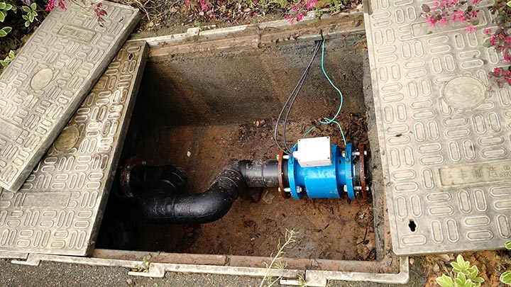 城鄉(xiāng)一體化供水計(jì)量電池供電電磁流量計(jì)安裝現(xiàn)場