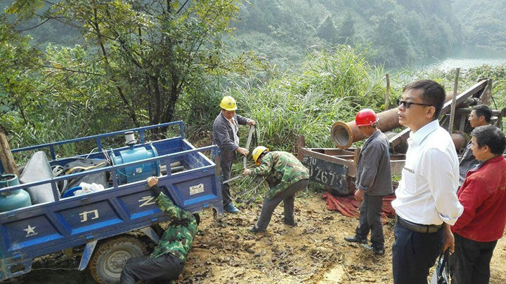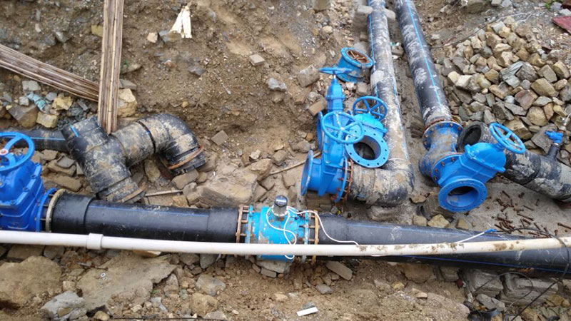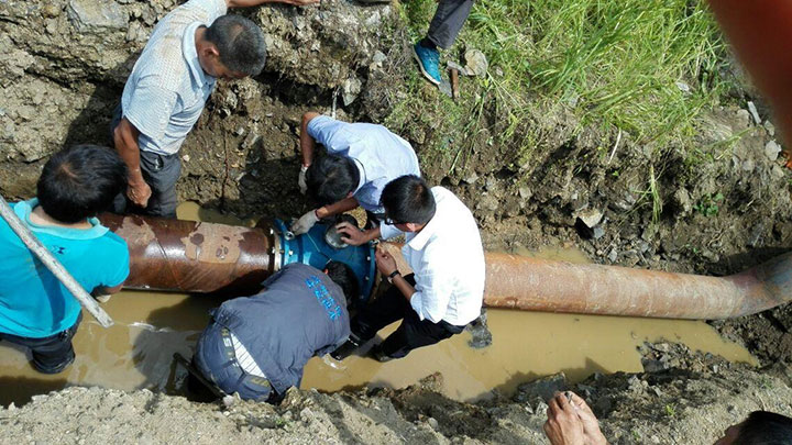 城鄉(xiāng)一體化供水計量電池供電電磁流量計安裝現(xiàn)場