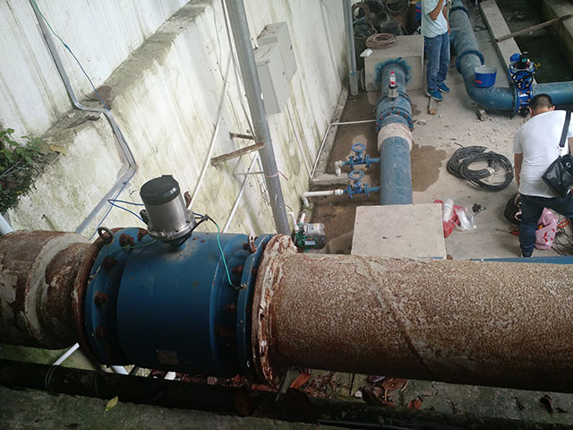 大口徑電池供電電磁流量計水廠使用現(xiàn)場