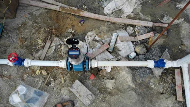 城鄉(xiāng)一體化供水計量電池供電電磁流量計安裝現(xiàn)場
