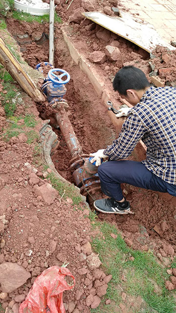 電池電磁流量計替換大口徑機(jī)械式水表安裝現(xiàn)場