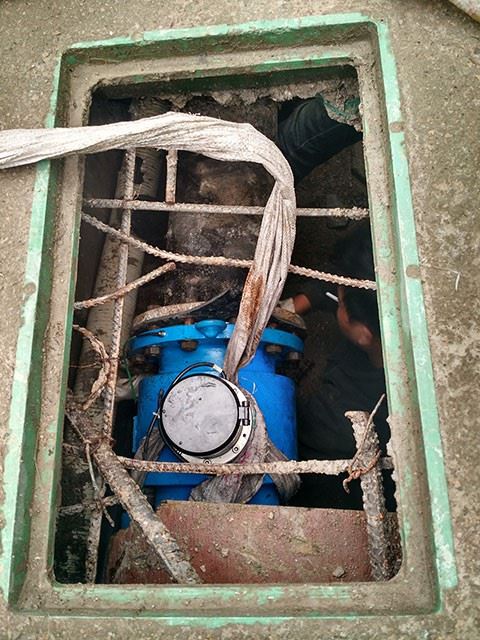 電池電磁流量計替換大口徑機械式水表安裝現場
